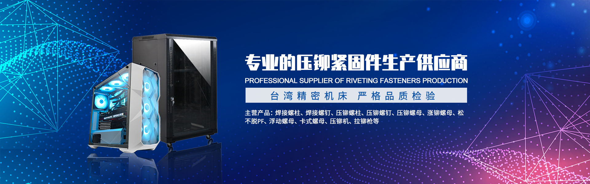 主要產品包括PEM壓鉚緊固件,面板緊固件(松不脫),不銹鋼卡式螺母,部分冷鐓螺母以及非標車制零部件,拉鉚螺母。手動鉚接工具,氣動鉚接工具。代理銷售美國雅固拉(Accuride)電子滑軌,美國索斯科(Southco)鎖具等等國內外知名品牌。廣泛地應用于電子機箱,通信設備,機械設備,船舶制造、汽車制造、裝飾裝潢、電器儀表等各種行業(yè)。